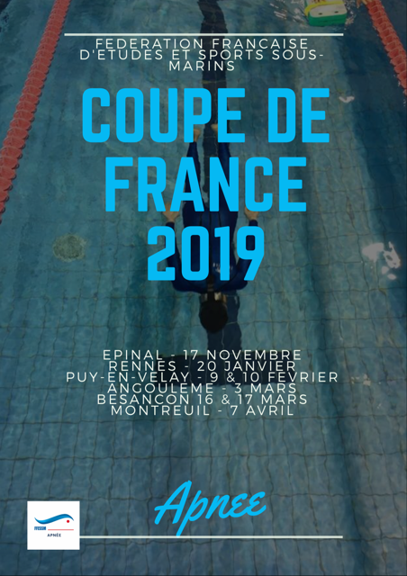 Cette année encore, Montreuil se porte organisateur de la manche parisienne de la Coupe de France. Pour la 6ème année consécutive, nous vous donnerons rendez-vous le dimanche 7 Avril 2019 pour une journée intense d'apnée et de bonne ambiance.